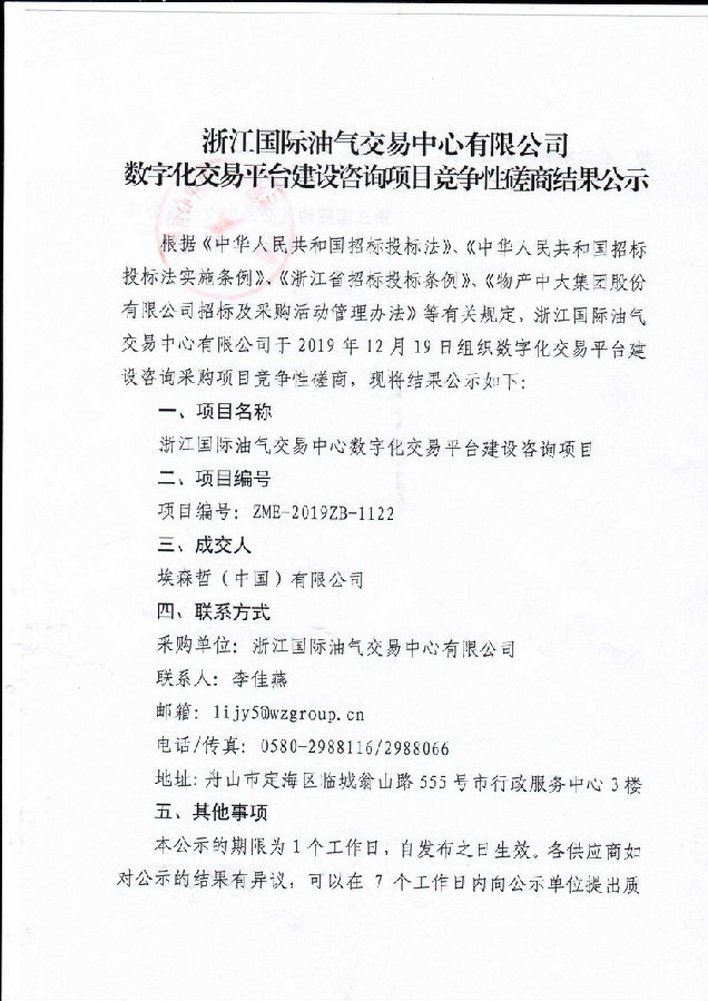 關(guān)于數(shù)字化交易平臺建設(shè)咨詢項目競爭性磋商結(jié)果的公示