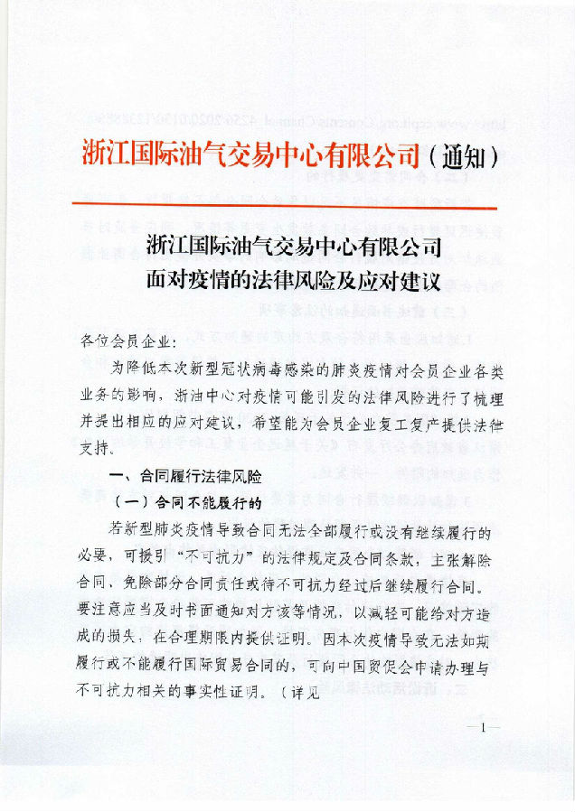 浙江國際油氣交易中心有限公司面對疫情的法律風(fēng)險及應(yīng)對建議