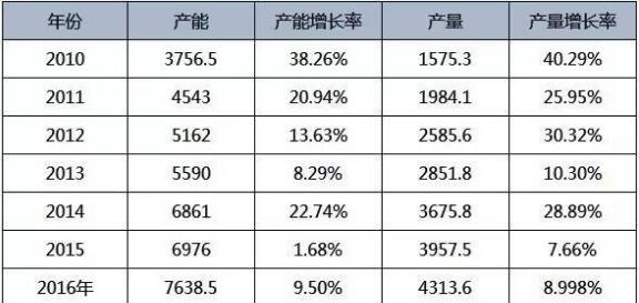 表1 2005-2016年中國甲醇產(chǎn)能產(chǎn)量統(tǒng)計表