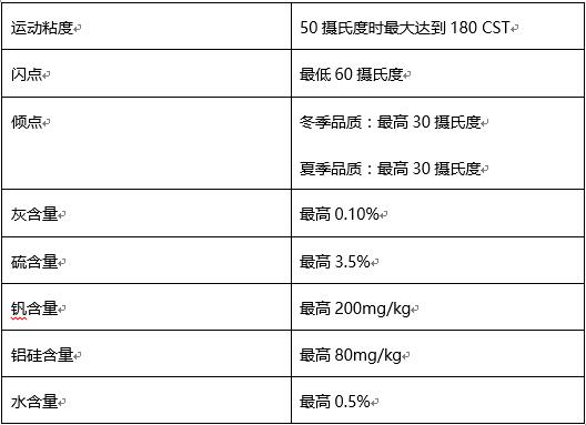 普氏評估中將符合RMG 380 CST和ISO 8217:2005條例的,且最大含硫量低于0.1% 的當做評估產品。規(guī)格包括: