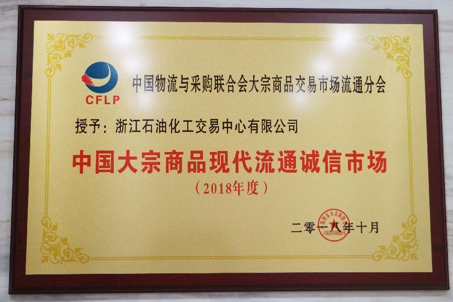 2018年10月11日,在由中國物流與采購聯(lián)合會主辦、中物聯(lián)大宗商品交易市場流通分會以及吉林省長吉圖開發(fā)開放先導(dǎo)區(qū)戰(zhàn)略實施領(lǐng)導(dǎo)小組辦公室承辦的“2018中國大宗商品創(chuàng)新發(fā)展高峰論壇”上,浙江石油化工交易中心(以下簡稱“浙油中心”)榮獲“2018年度中國大宗商品現(xiàn)代流通誠信市場”獎項。浙油中心董事、總經(jīng)理朱彤代表公司領(lǐng)獎。