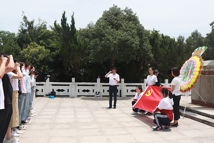 在革命烈士紀(jì)念碑前,面對(duì)著鮮紅的黨旗,黨員們整齊列隊(duì)并舉起右拳,緬懷革命先烈,重溫入黨誓詞,回顧入黨初心,牢記黨員使命。